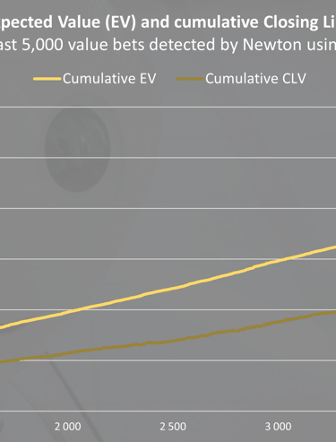 More than EV, this CLV makes it possible to measure the theoretical profitability of a bet, assuming zero variance. Below, you’ll find a chart showing the EV and CLV generated from the last 5,000 value bets detected by Newton — the average monthly volume of the Diamond subscription — based on the default settings.